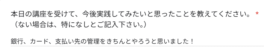 講座を受けて、今後実践してみたいことも聞いてみました!!